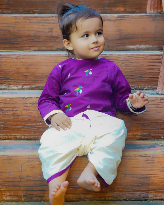 Bird Embroidery Dhoti Kurta Set For Baby Boy