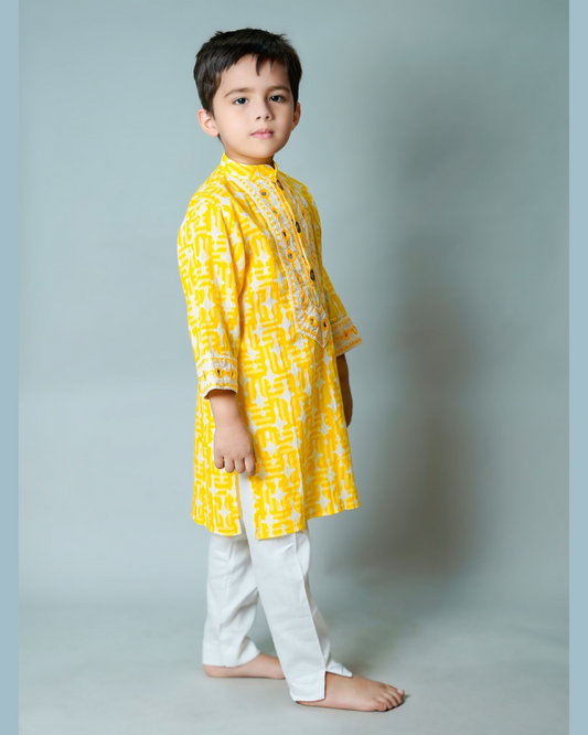 Boys Fruit Printed Cotton Kurta With Pyjama