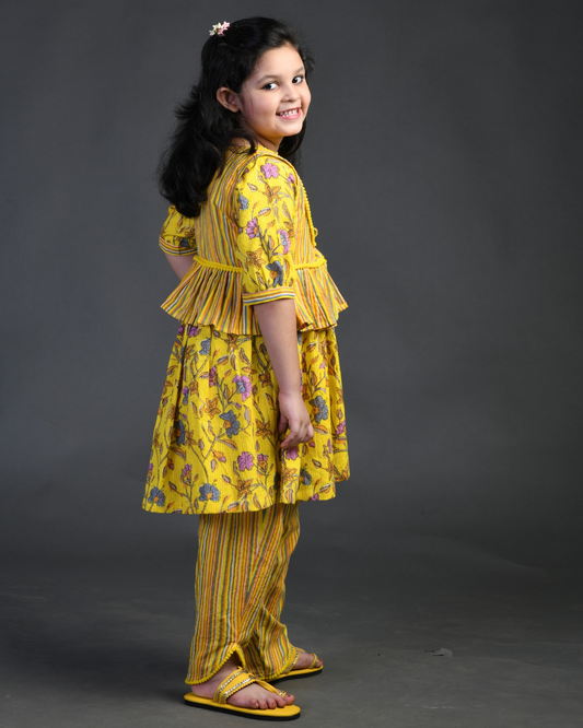 Mustard Moon Block Print Cotton Co-Ord Set for Girls