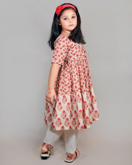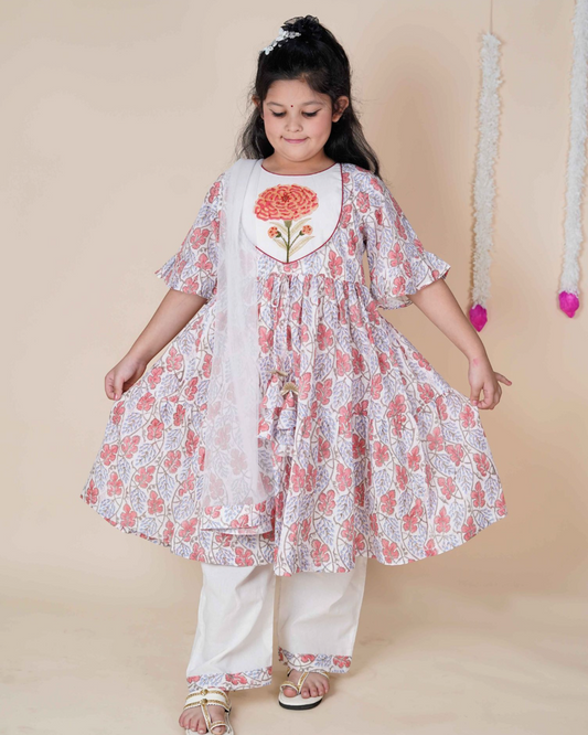 Floral Grace Mul Cotton Anarkali Set for Girls