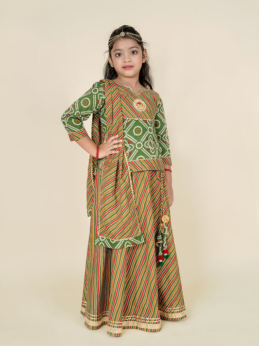 Festive Style – Bandhani Kurti With Leheriya Lehenga And Dupatta Set for Girls
