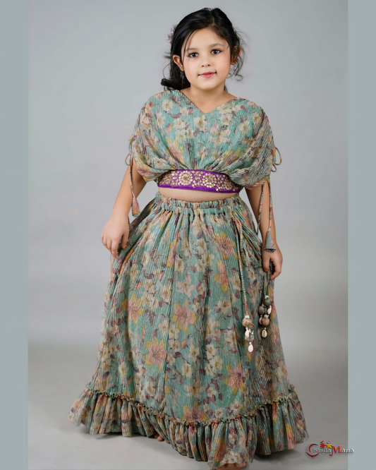 Mint Blossom Floral Lehenga Set for Girls