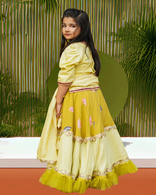 Ethnic Floral Yellow Ghaghra Set for Kids