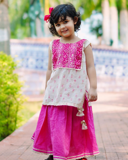 Girls Hot Pink Bandhani Top With Dhoti Pant
