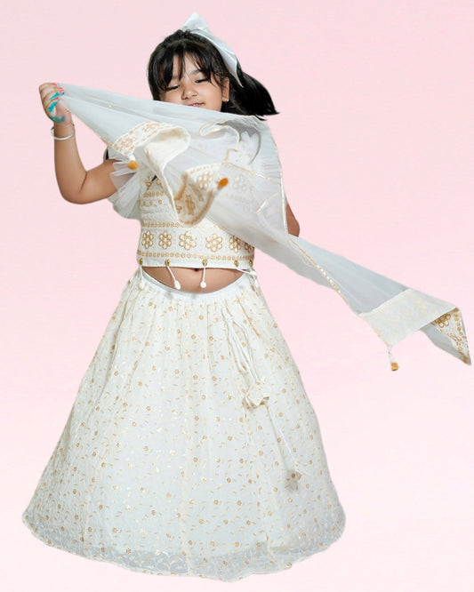 Girls Floral Hot pink Mirror Work Lehenga Set