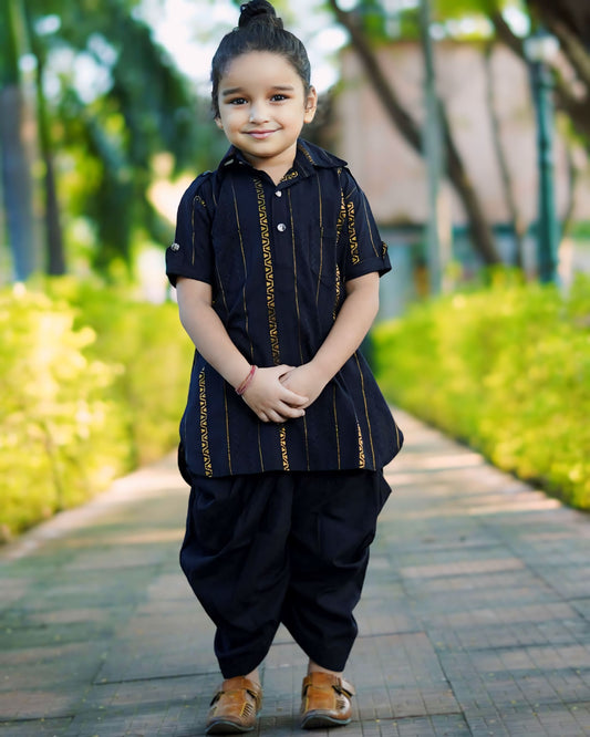Black Pathani Kurta With Patiyala For Boys