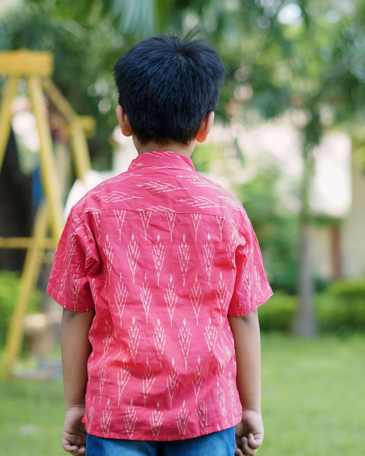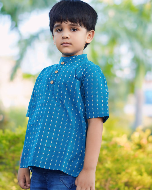 Boys Pure Cotton Ikat Print Short Kurta Shirt