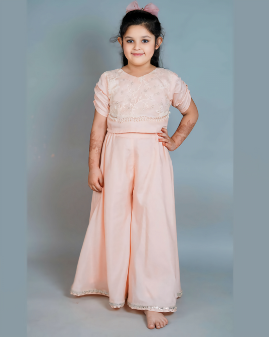 Girls Brown Top With Asymmetric Stylish Cape And Palazzo