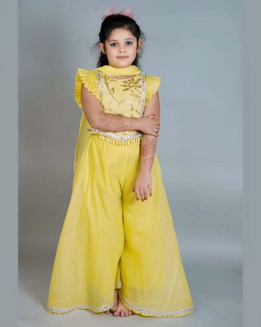 Mustard Gota Hand Work Kurta Palazzo And Dupatta Set