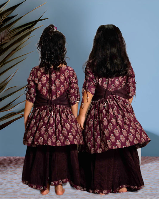 Girls Beautiful Maroon Handwork Detailing Anarkali With Detachable Belt