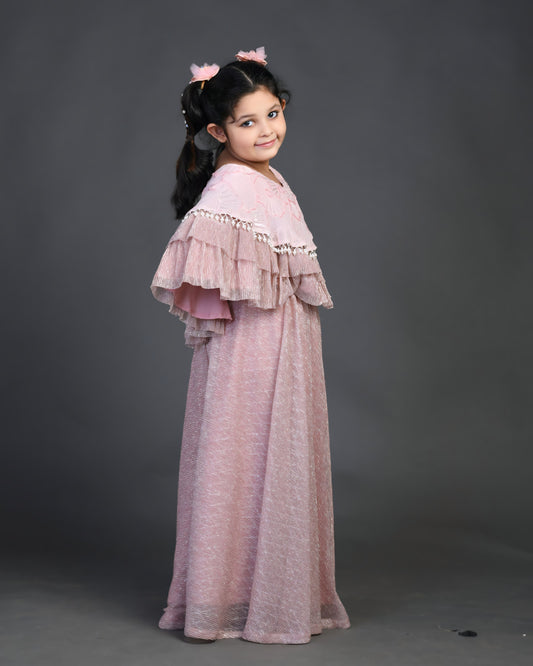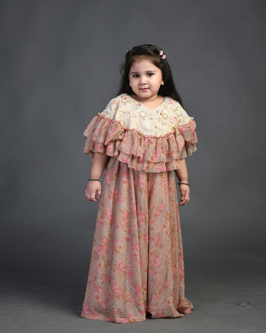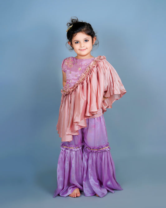 Girls Lilac Cape Style Embroidered Top And Sharara