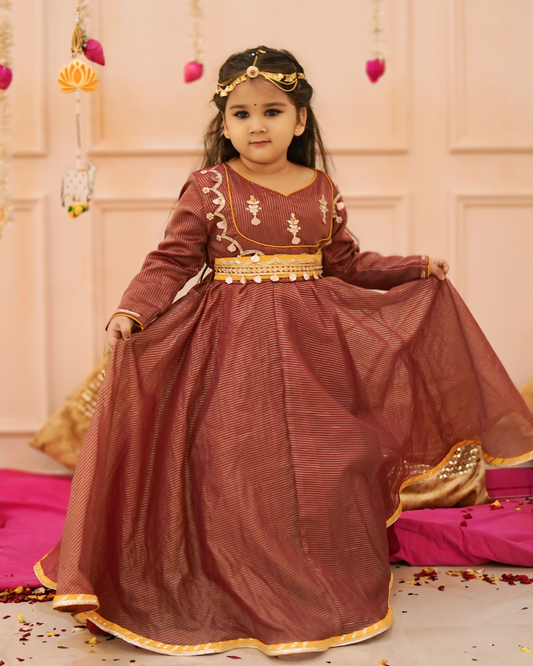 Girls Beautiful Maroon Handwork Detailing Anarkali With Detachable Belt