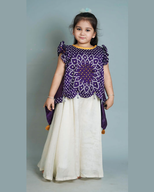 Girls Asymmetric Bandhani Top With Palazzo Suit Set