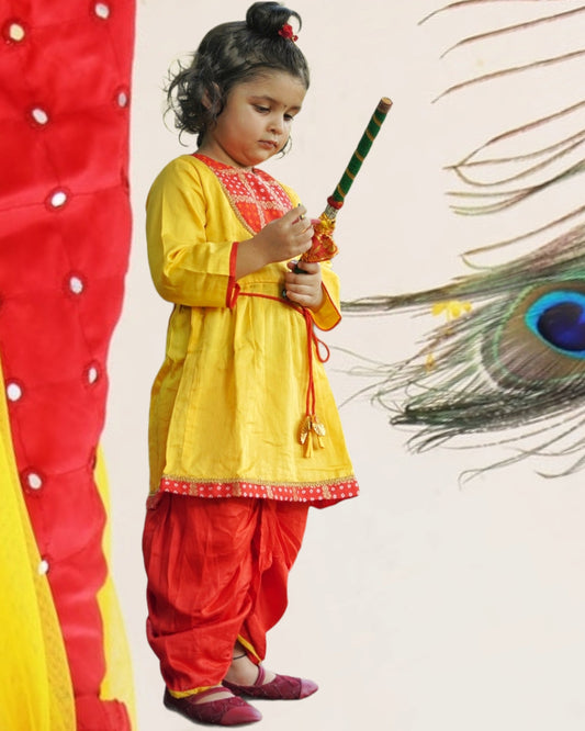 Girls Side knot Detail Pleated Kurti And Pink Dhoti Pant